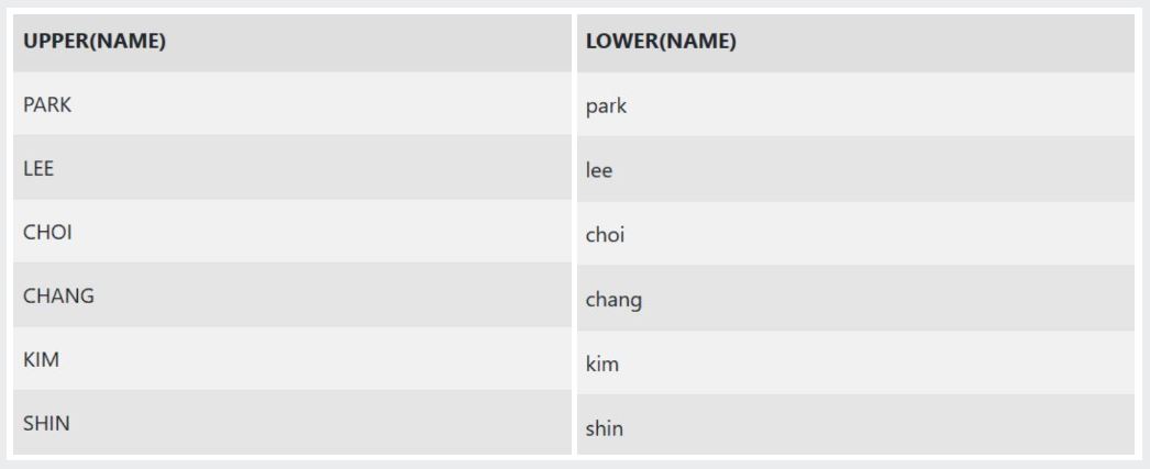 LOWER(문자열) : 문자열 모두를 소문자로 변경