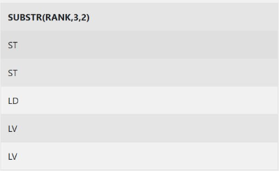 SELECT SUBSTR(RANK, 3, 2) FROM table1;
