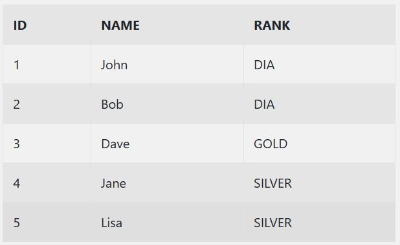 MASTER에서 ST만, GOLD에서 LD만, SILVER에서 LV만 반환된 것을 볼 수 있다.